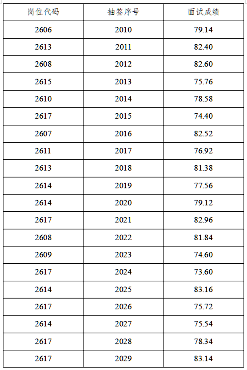 根據(jù)《望江縣醫(yī)院2026年赴高校公開招聘專業(yè)技術(shù)人員公告》有關(guān)規(guī)定,現(xiàn)將面試成績(jī)公示如下:
